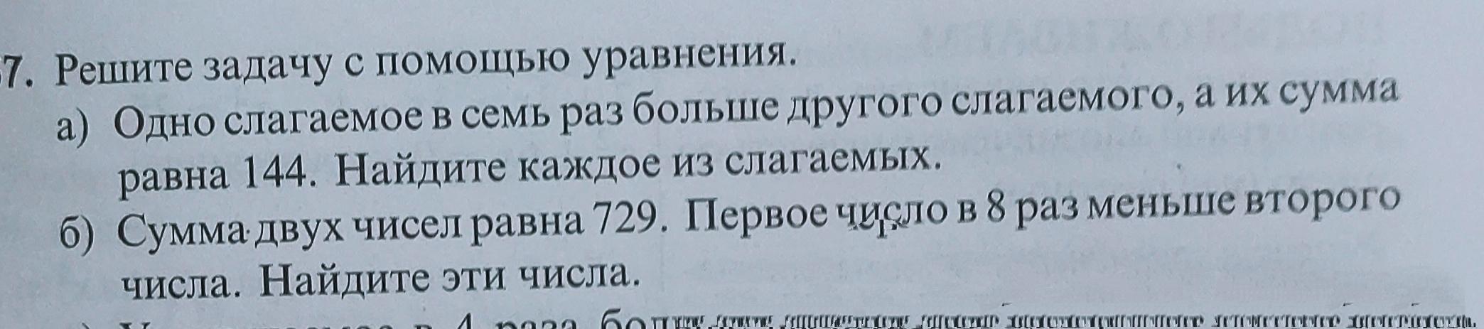 А) пусть х - второе слагаемое, тогда 7х - первое слагаемое, получаем: