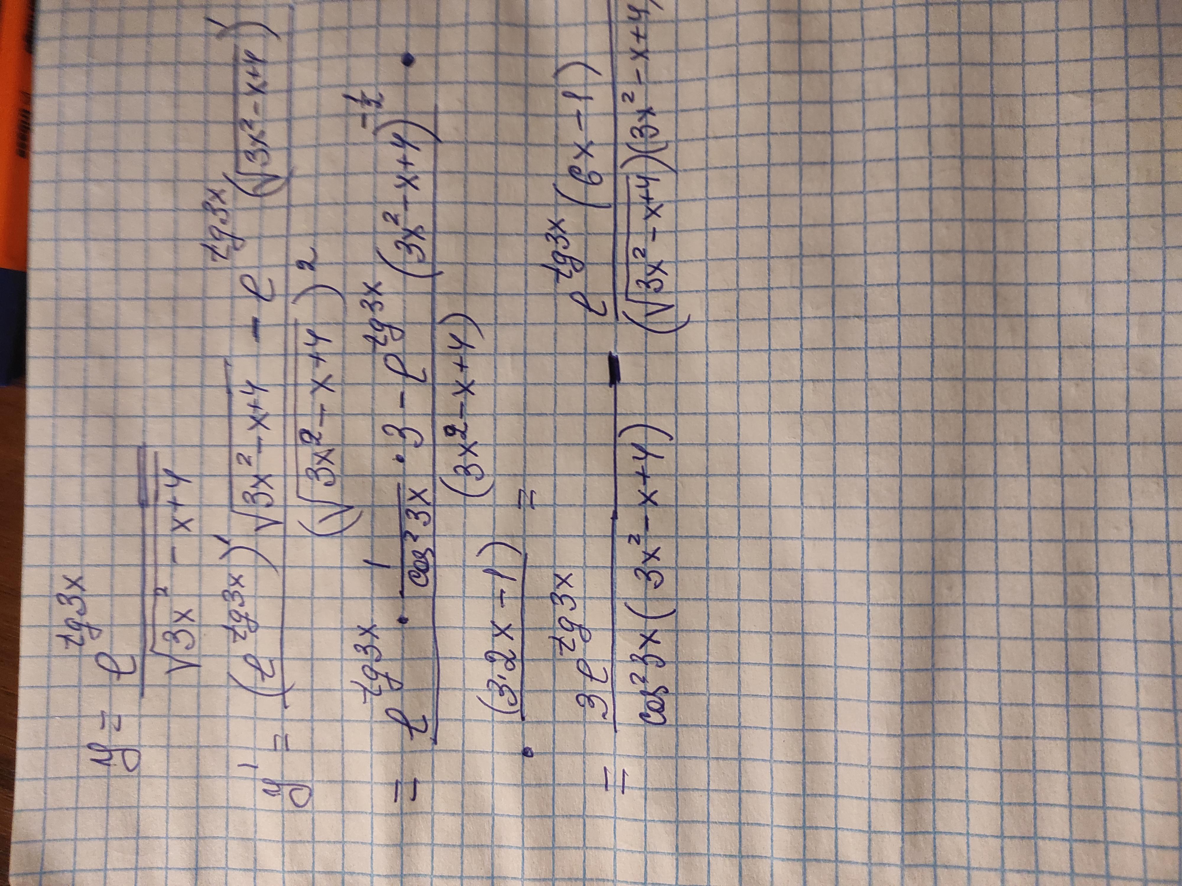 y=(e^(tg3x))/sqrt(3x^2-x+4)