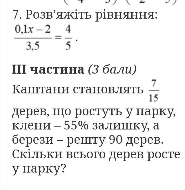 Каштаны = (7/15х) = 7/15 * 375 = 7/1 * 25 = 175/1 = 175 деревьев