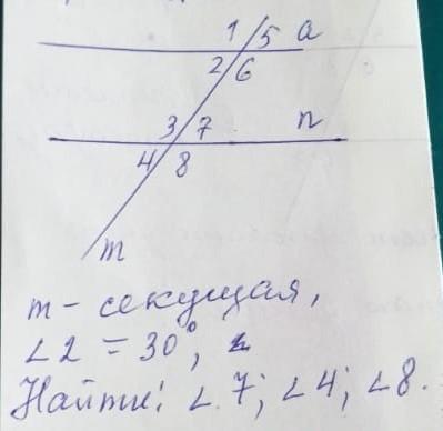 Объяснение: Кут 7=30, кут 4=30, кут 8=150