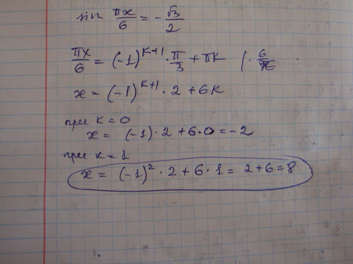 Решите уравнение: sin(Пх/6) = -корень из 3/2