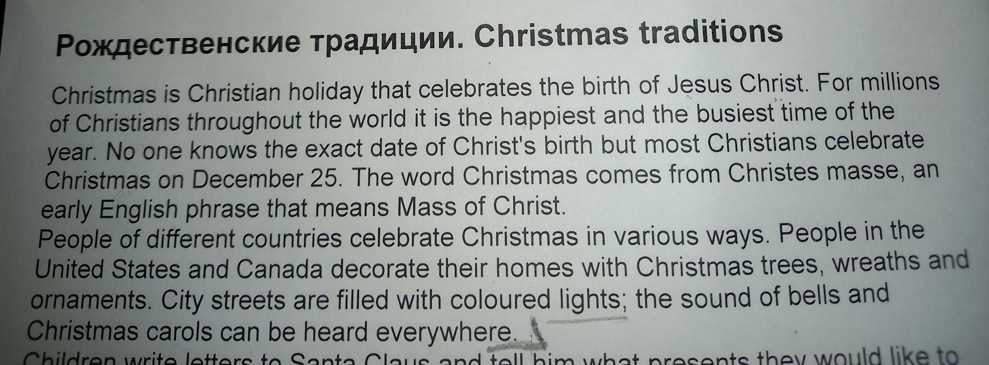 Крисмс ис Крисчн холидей зет селебрейт з бз оф Жисиз Крист. Фо милийнс оф Крисчнс сруаут з волд ит ис з хеппийст энд з бизийст тайм ов з йер. Ноу ван ноувс з игзект дейт оф з Кристс бз бат мост Крисчнс селебрейт Крисмс он Дисембе твенти файв (25). З волд Крисмс камс фром Кристис мес, эн эрли Инглиш фрейз зет минс Мес оф Крист.