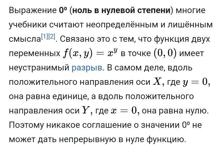 Существует правило, что любое число, кроме нуля, возведенное в нулевую степень, будет равно единице: