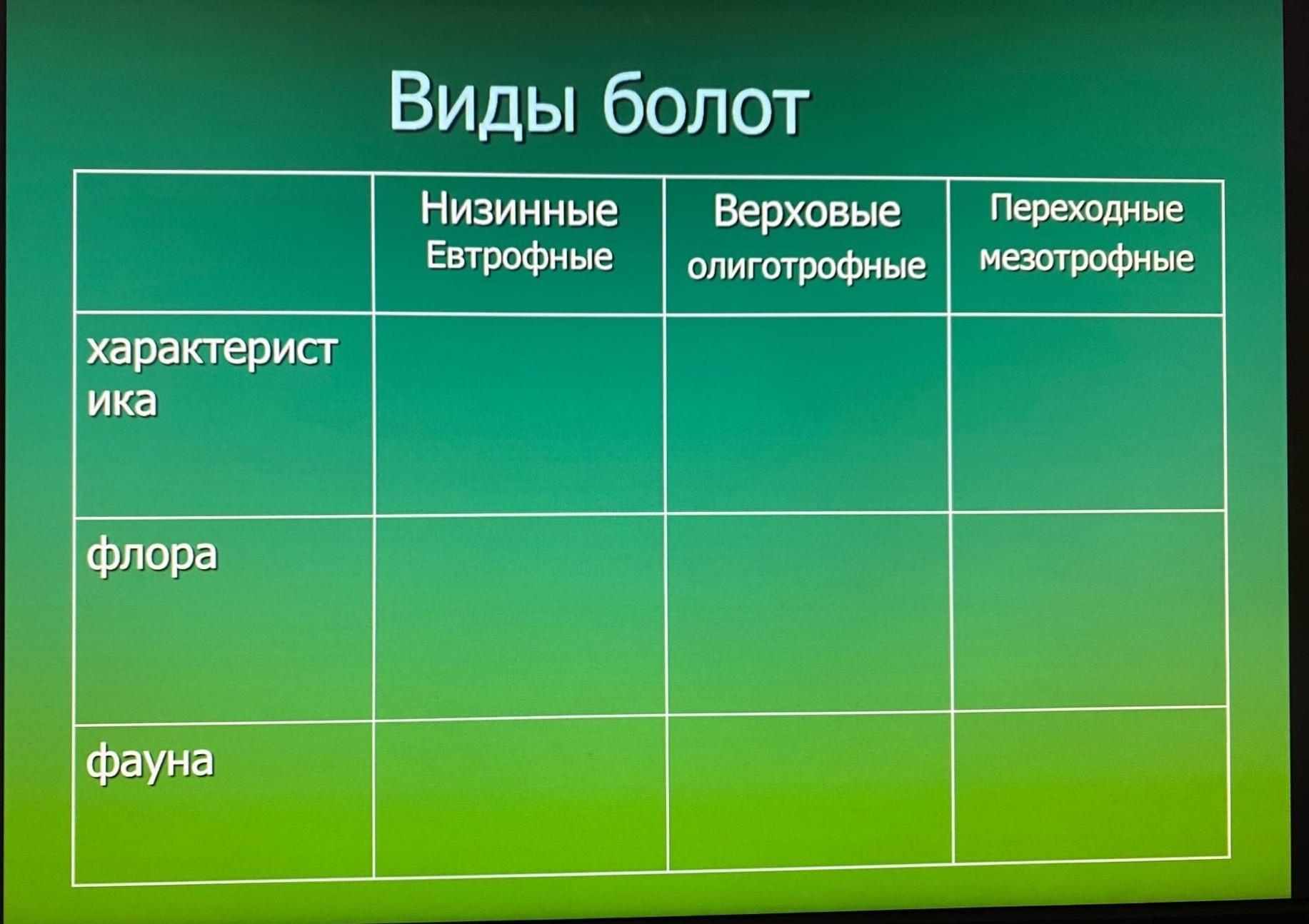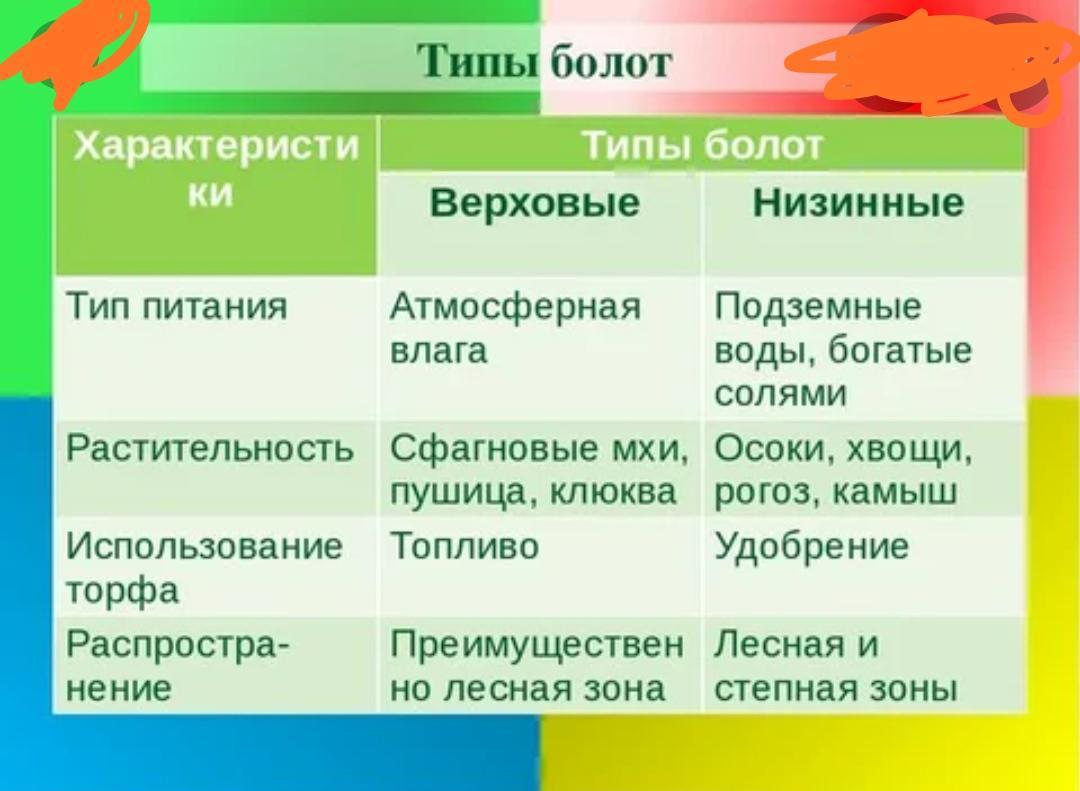 Переходные - по характеру растительности и умеренному минеральному питанию находятся между низинными и верховыми болотами.