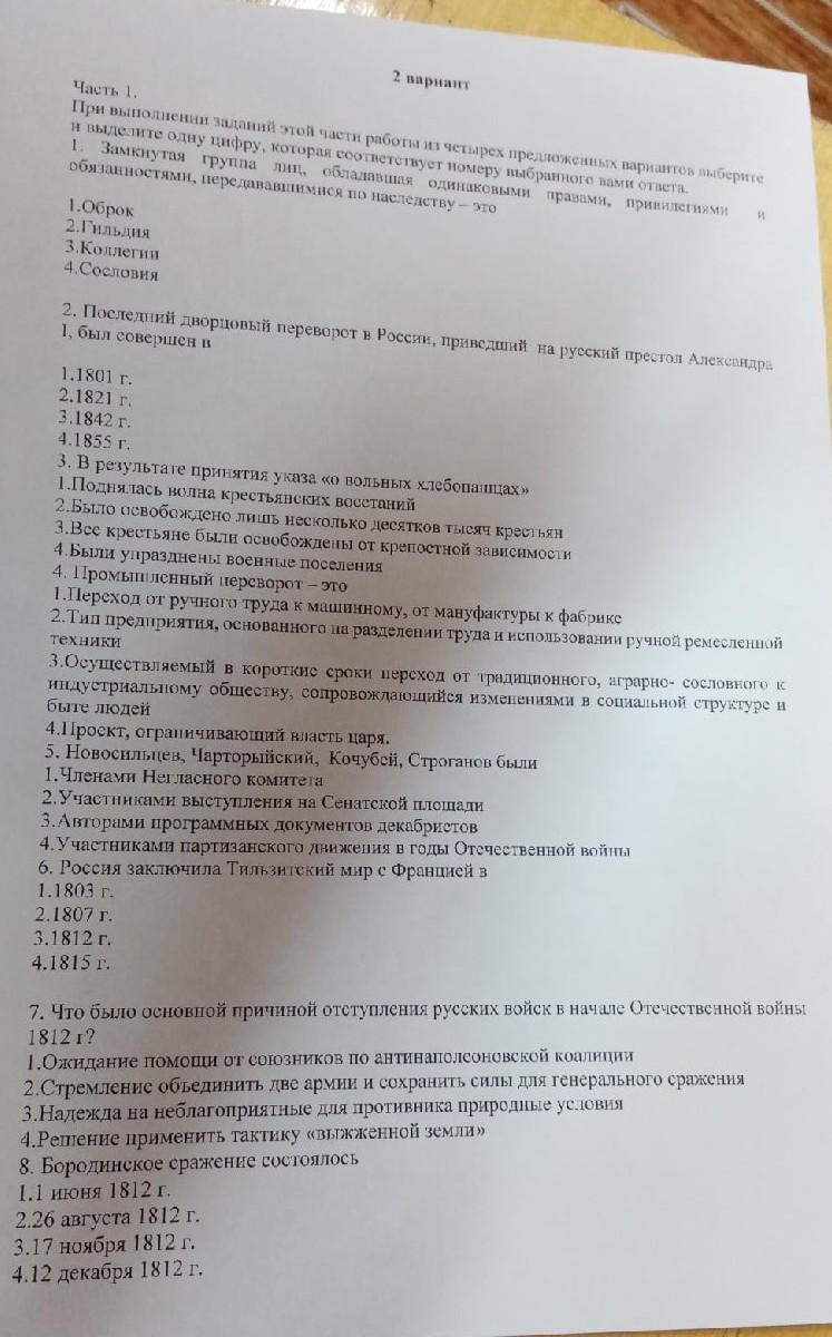 И скажите своему историку чтоб соблюдал хоть какие-нибудь правила оформления текста, а то все подряд идет, не поймешь где вариант ответа, а где следующий вопрос