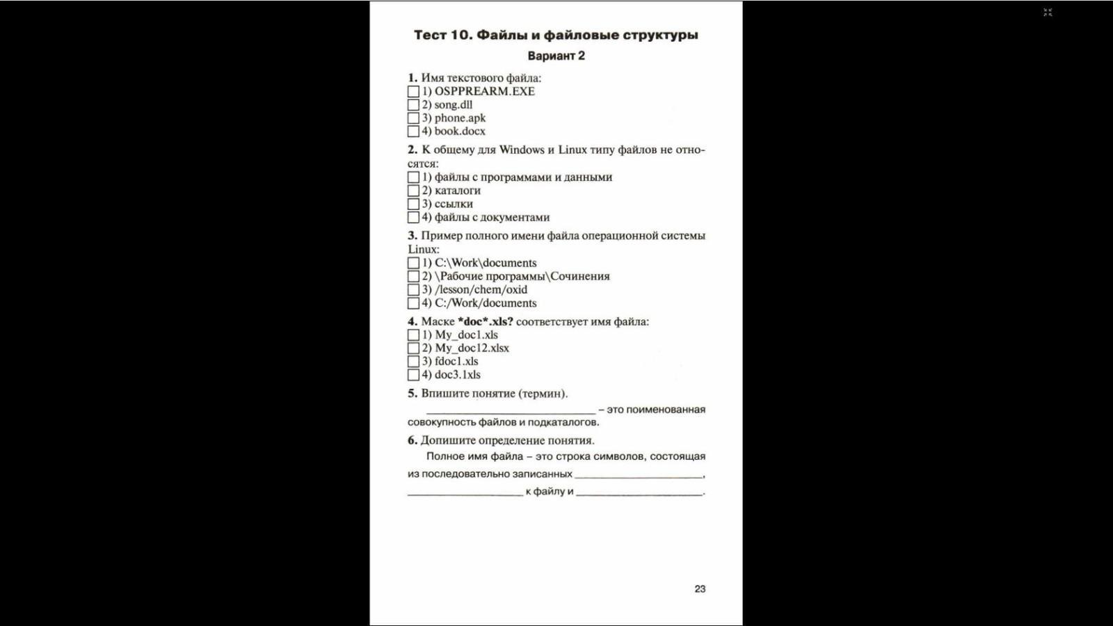 6. Полное имя файла - это строка символов, состоящая из последовательно записанных имени логического диска, пути к файлу и имени файла