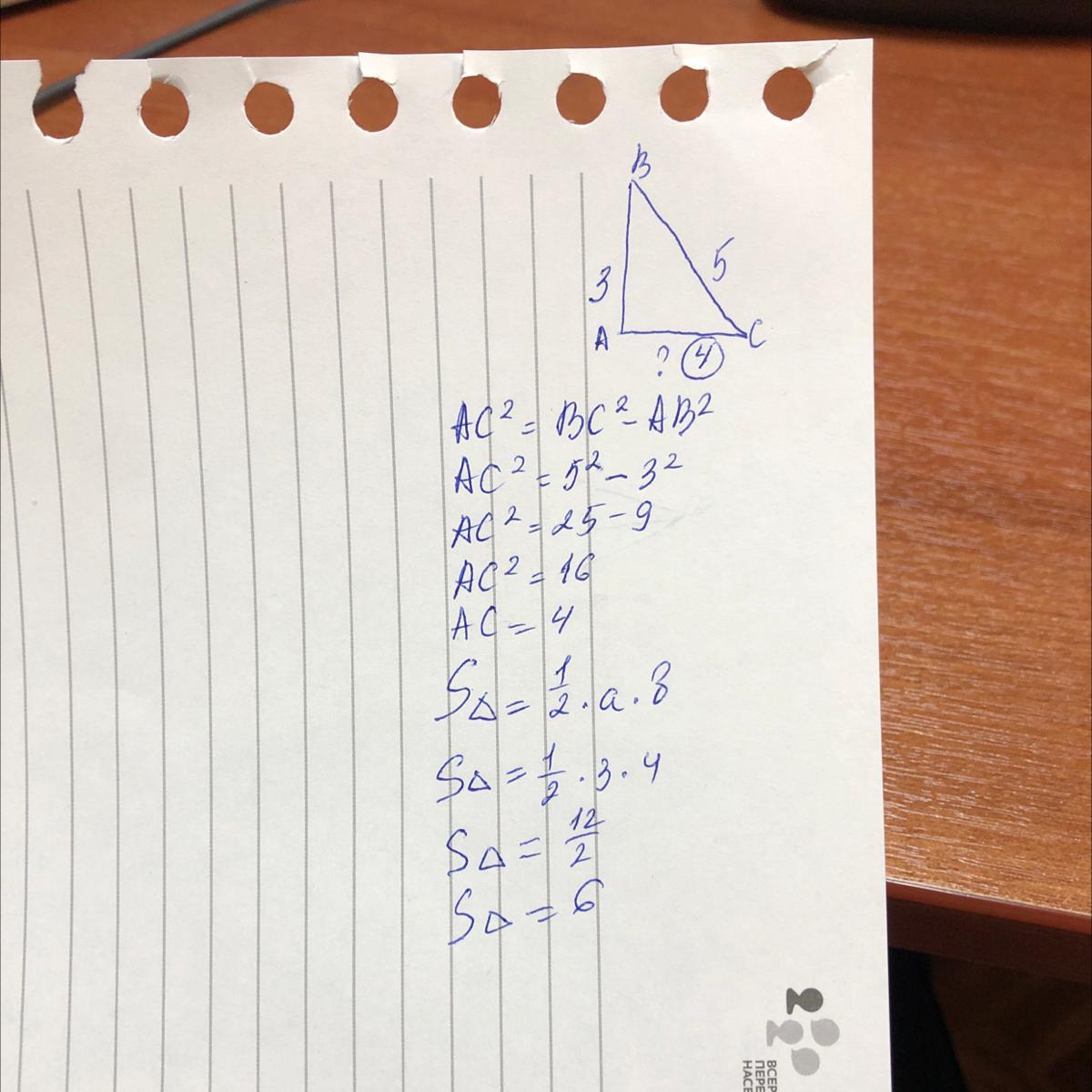 Один из катетов прямоугольного треугольника равен 3 см, гипотенуза 5 см. Найдите второй катет и площадь треугольника