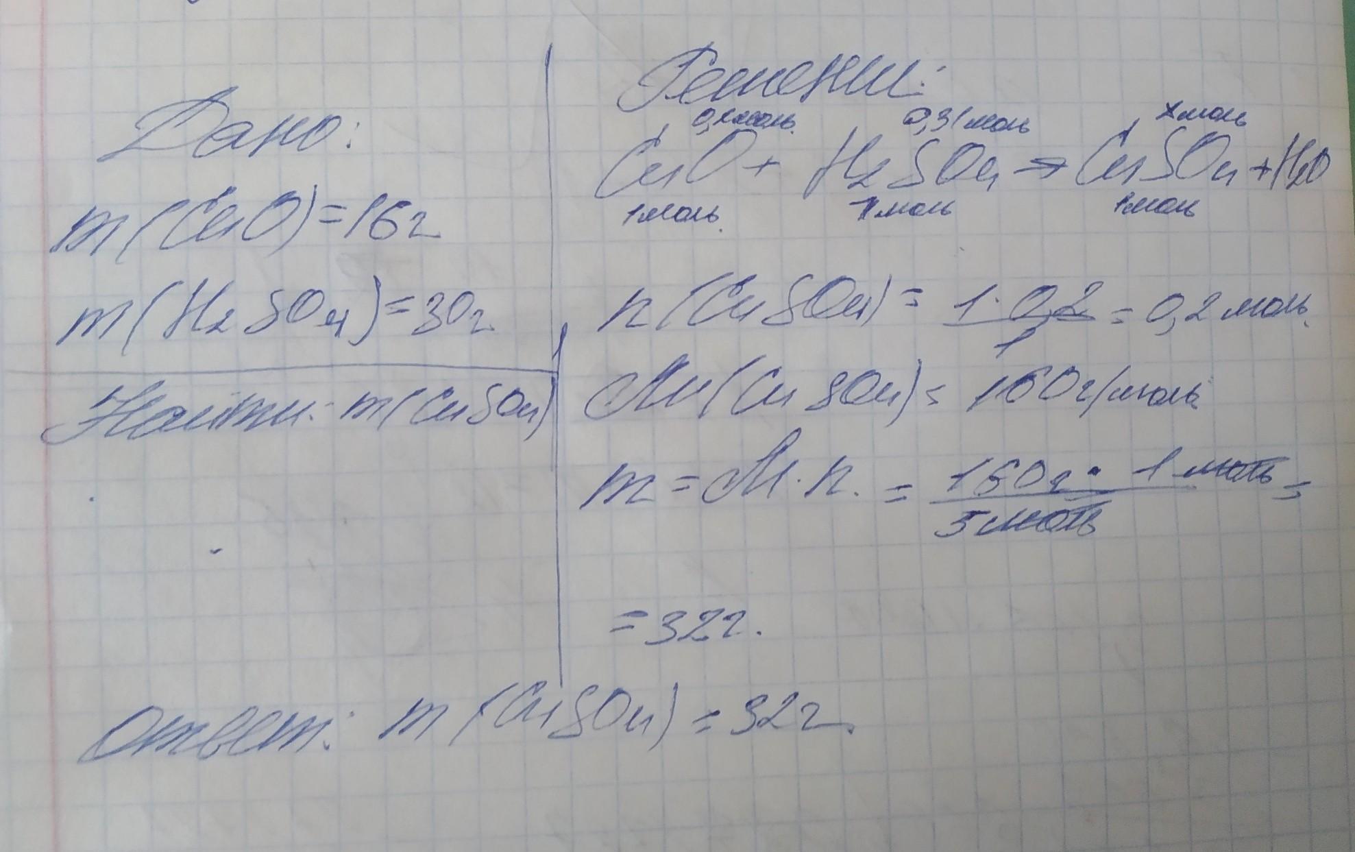 оксид купрума массой 16г, обработали раствором , содержащим 30г сульфатной кислоты . расчитайте массу образовавшейся соли