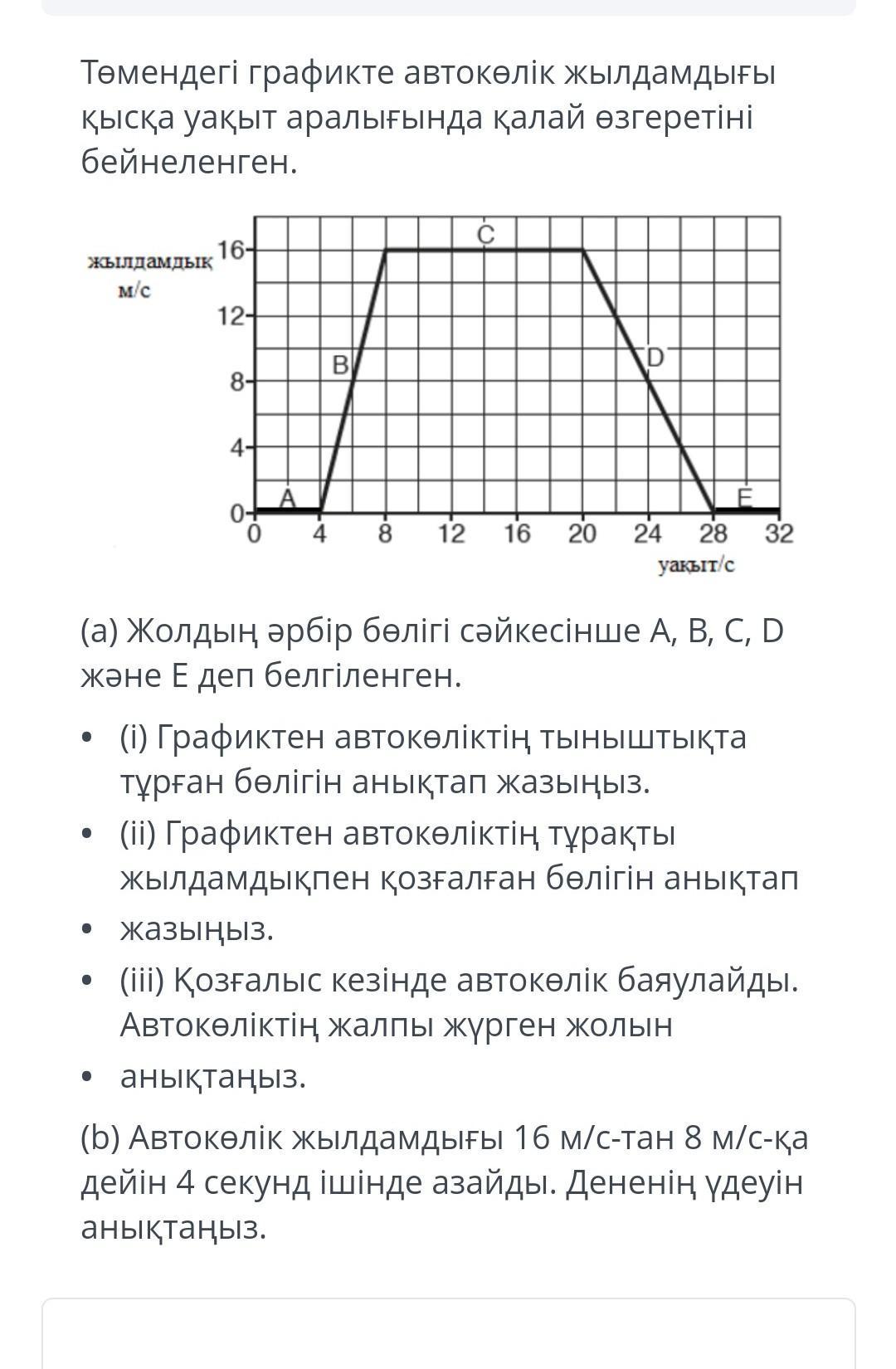 (ii) На графике определите и запишите часть транспортного средства, которая движется с постоянной скоростью.