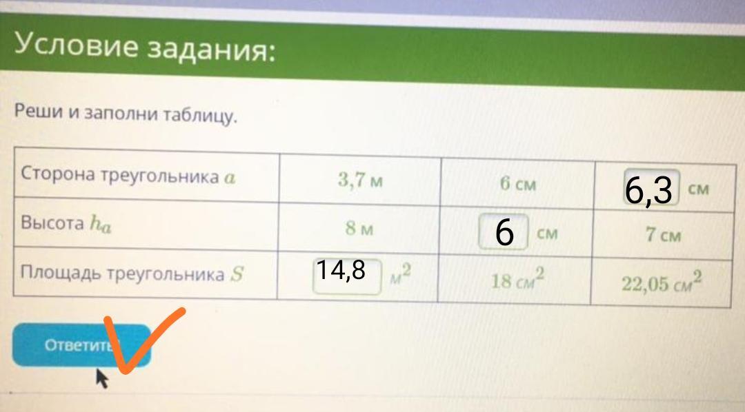 S=1/2*h*a=1/2*3,7*8=14,8м²