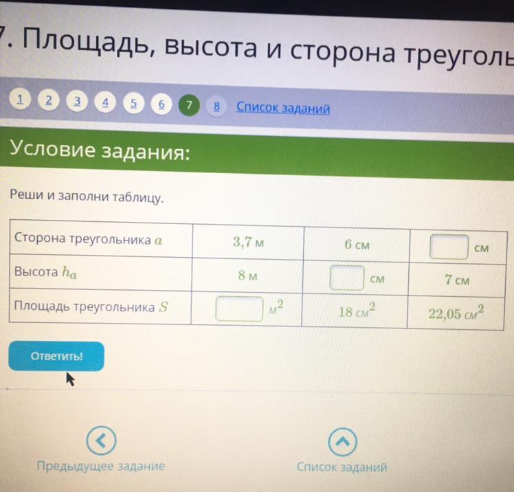 а=2*S/h=2*22,05/7=6,3см