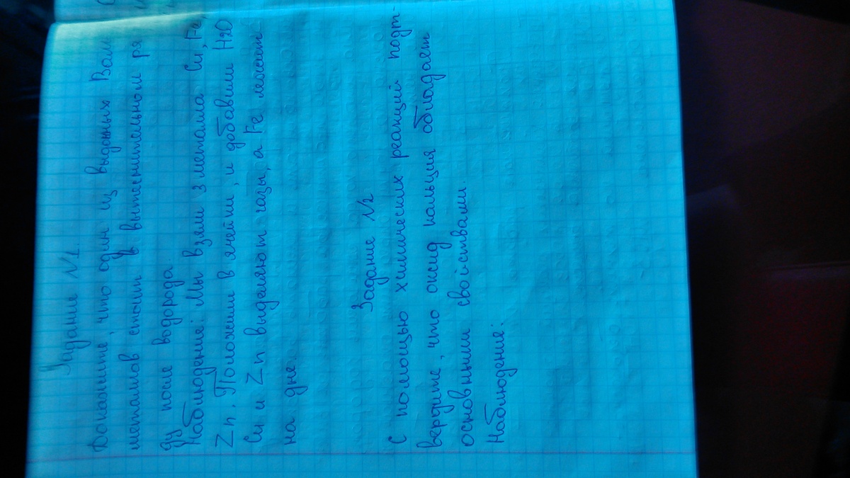 1) есть ошибка у тебя медь с водой не взаимодействует! а вообще правильнее добавлять соляную кислоту! с Zn идет активно, пузырьки! с железом медленно! а с медью не идет! тк она стоит после H