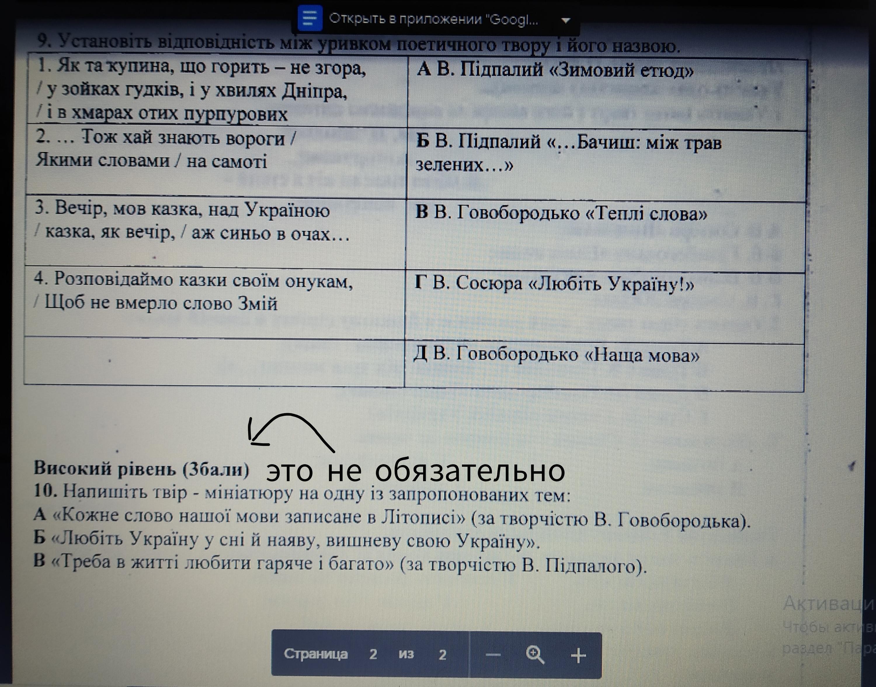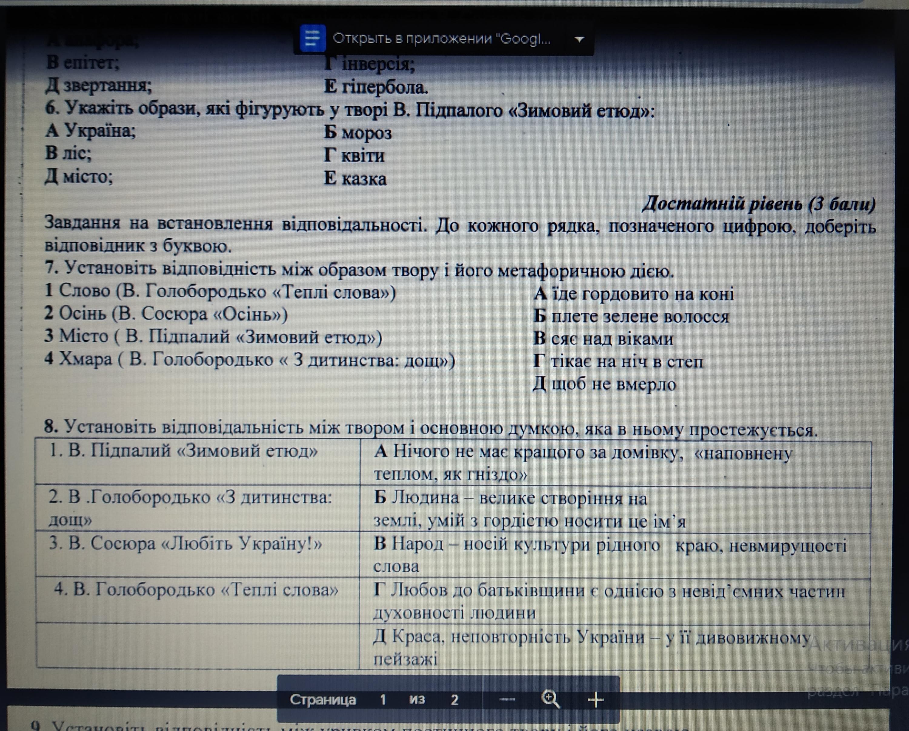 Контрольна робота номер 3 з теми "Світ української поезії (В.Сосюра,В.Голобородько,В.Підпалий). Їх сучасної української поезії".