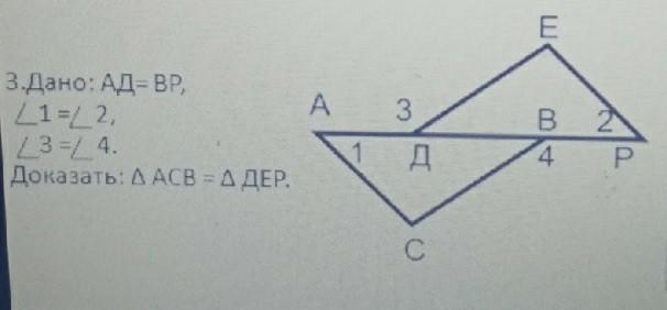 Сторона АВ и два прилежащих к ней угла ∠1 и ∠ АВС треугольника АСВ соответственно равны стороне ДР и двум прилежащим к ней углам ∠2 и ∠ РЕД треугольника РЕД , то ΔАСВ = ΔРЕД по 2-му признаку (стороне и двум прилежащим углам) , что и требовалось доказать.