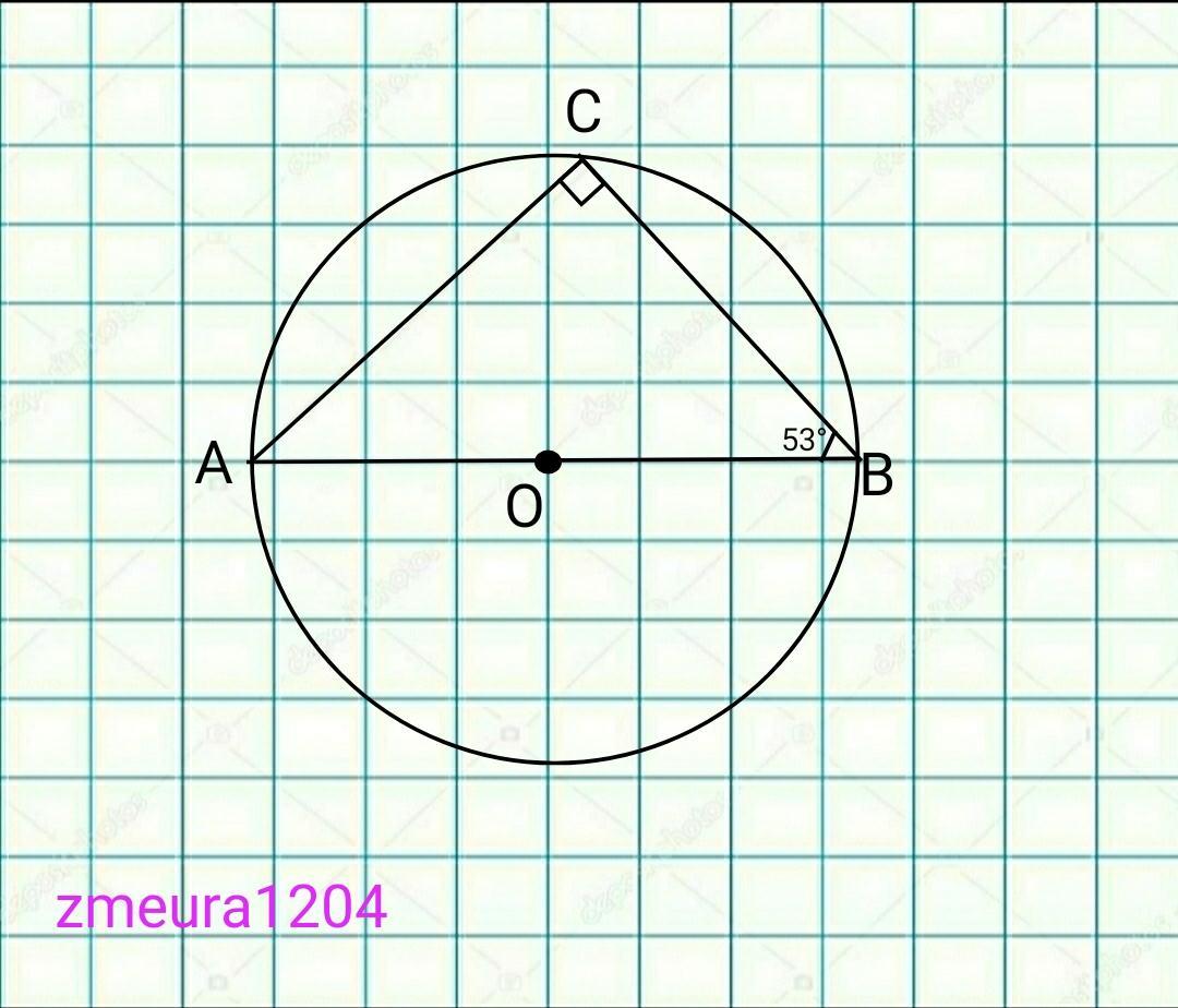 В окружность с центром О вписан треугольник с вершинами А, В и С. Точка О лежит на строне АВ. Найди угол ВАС, если угол АВС =53 градуса