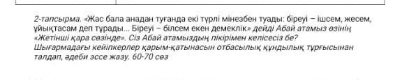 Мен Абай атаның ойымен келісемін.Абай атанын айтқаны дұрыс деп есептеймін. Ішсем , жесем , ұйықтасам деп туатын бала салақ ,өр көкірек болды.Ал көрсем , білсем деп туылатын бала ақылды ,ақкөңіл болады.