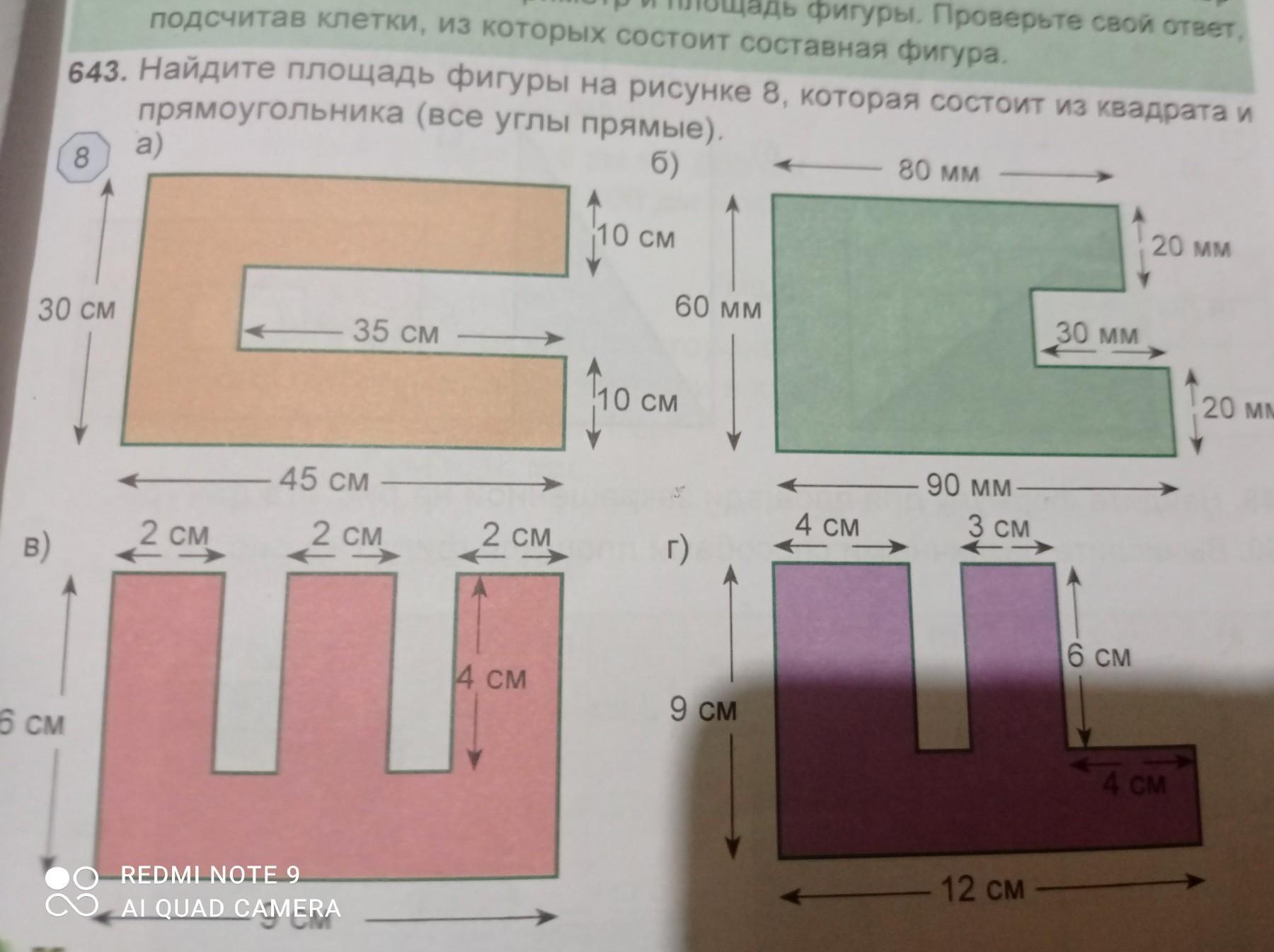 б) площадь фигуры=90*20+60*20+20*80=4600