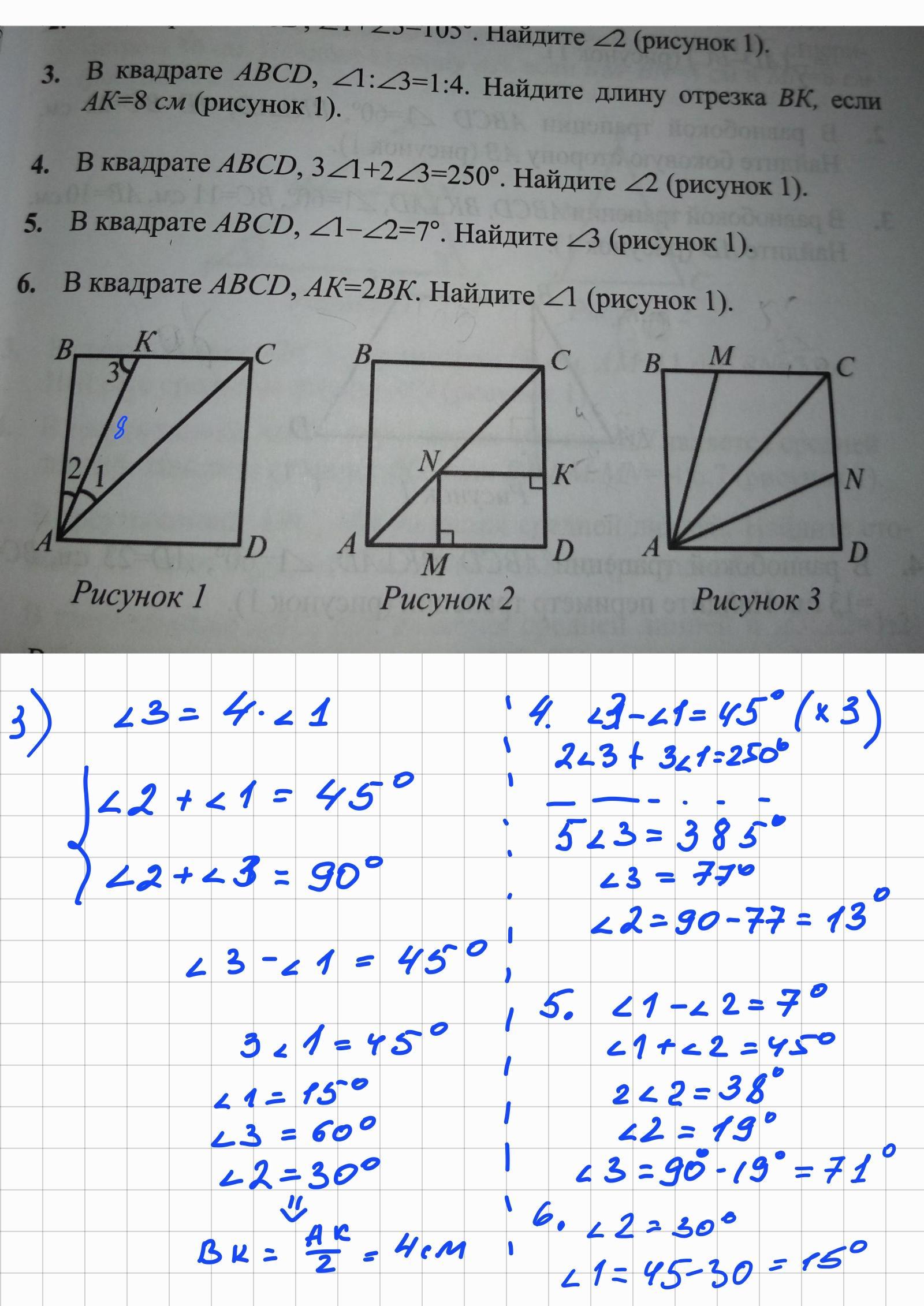 3. 4 см; 4. 13 градусов; 5. 71 градус; 6. 15 градусов