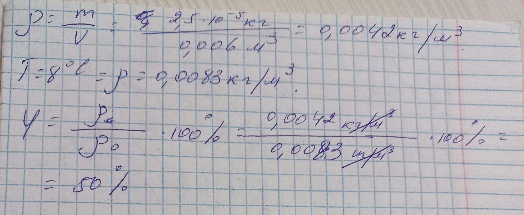 какова относительная влажность воздуха если через филтр пропустили 6 литров воздуха при температуре 8 и его масса увеличилась на 25мг