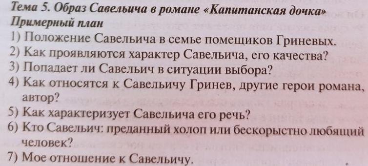 6) Савельич по положению - раб но не раб по духу. Савельич бескорыстно любящий человек.Образом Савельича Пушкин протестует против крепостного права.