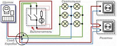 Ответ:На данном рисунке представлена упрощённая электрическая схема подключения выключателя, розеток и ламп. Она является довольно распространенной и повсеместно используется при электрификации жилых квартир