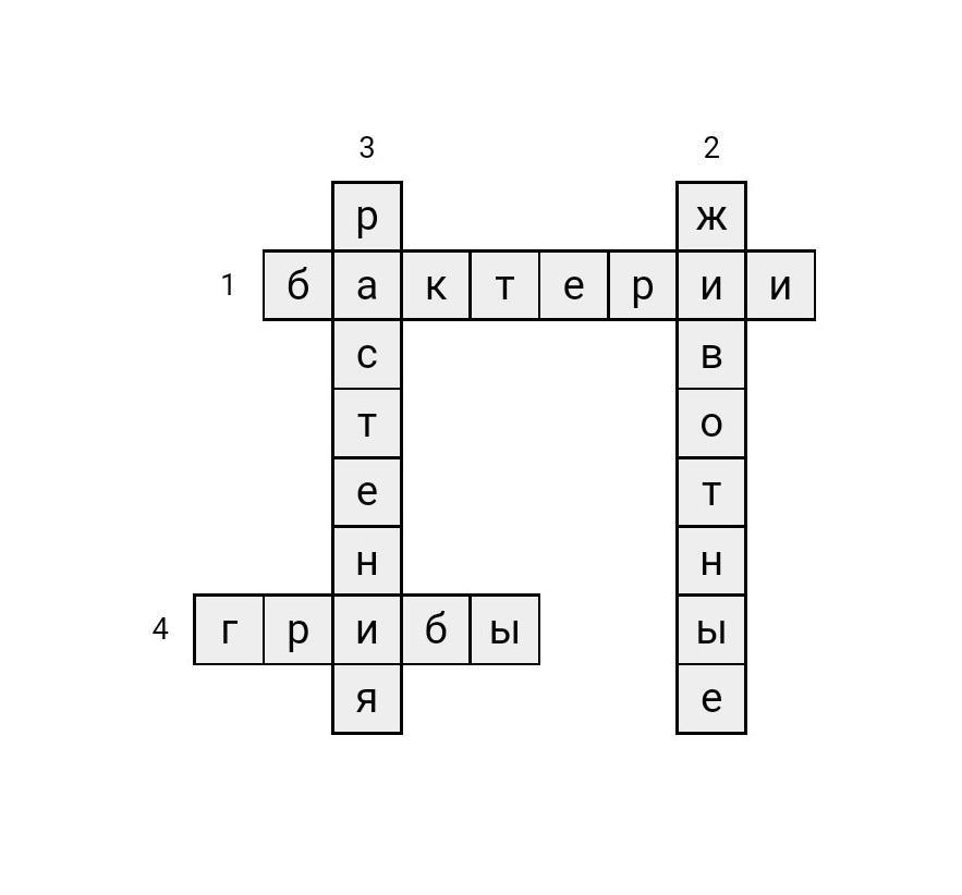 3 по вертикали -организм, обычно развивающийся в неподвижном состоянии, получающий питание из воздуха и почвы