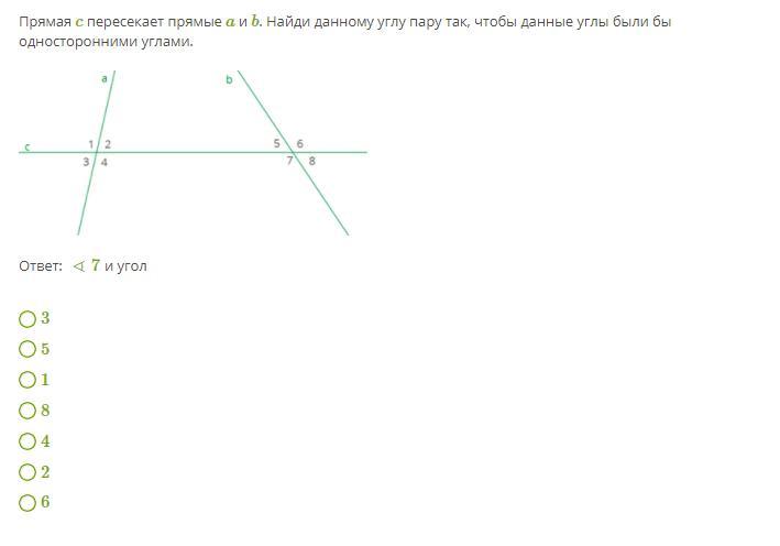 Это углы 7 и 4 они лежат по одну сторону от секущей с