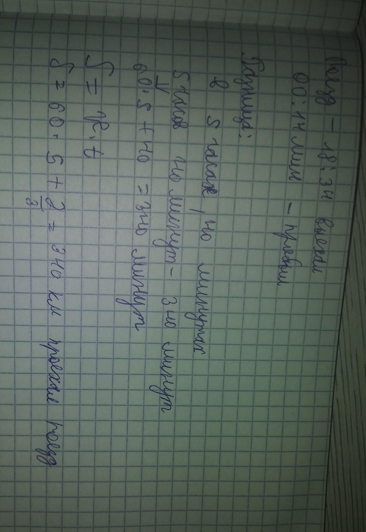 Поезд выехал в 18 ч 34 мин и прибыл в 0 ч 14 мин следующих суток, передвигаясь со скоростью 60 км/ч. Найдите расстояние,которое проехал поезд .