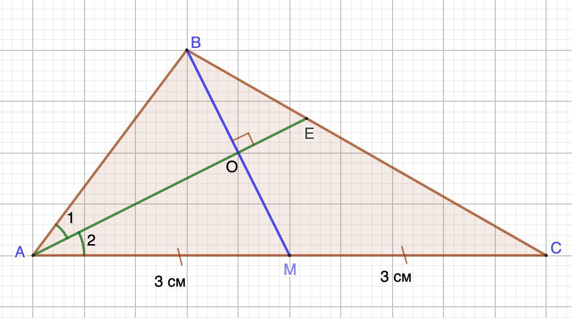 АМ = АС : 2 = 6 : 2 = 3 (см) (ВМ - медиана)