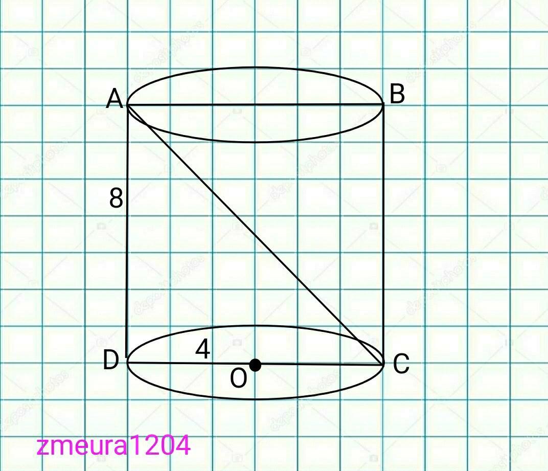 Радіус основи циліндра 4м,висота 8м,знайдіть діагональ осьового перерізу