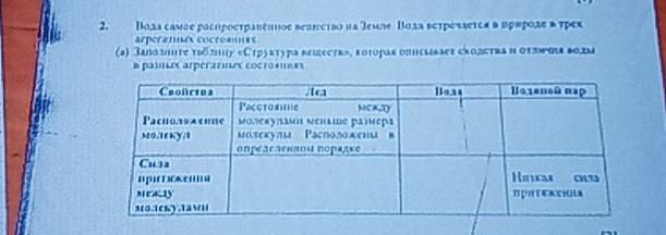 вода распространённое вещество на земле вода встречается в природе в трёх агрегатных состояниях а)Заполните таблицу структура веществ которое описывает сходства и отличия воды в разных агрегатных состояниях