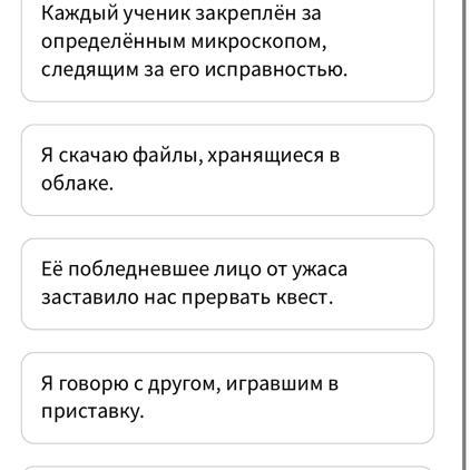 3) Ее побледневшее от ужаса лицо заставило нас прервать квест (разрыв причастного оборота)