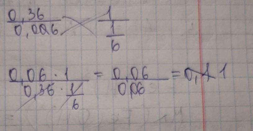 0,36 : 0,06 = 1: 1/6 по основному св-ву 0,36*1\6=0,06*1; 0,36\6=0,06;0,06=0,06.яв-ся пропорцией.