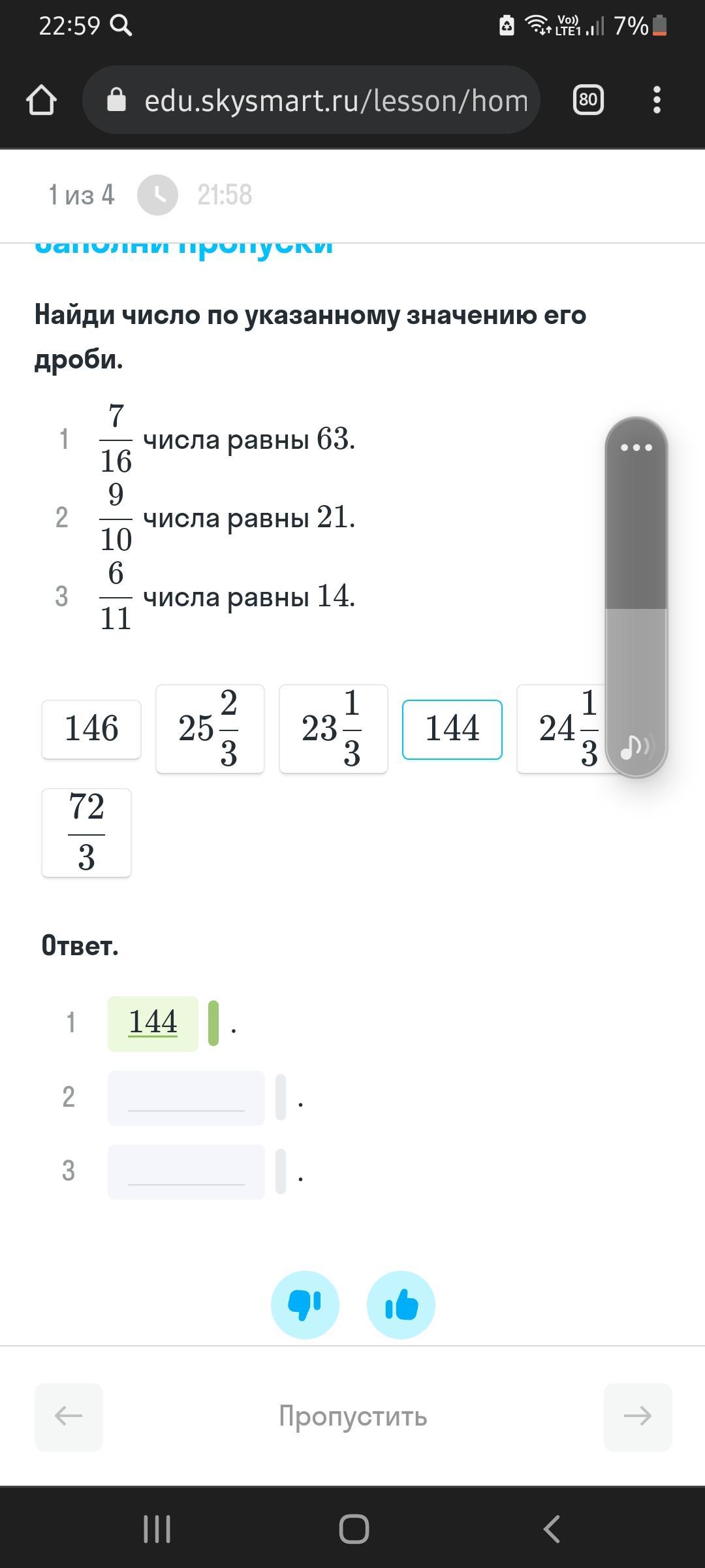 Х=14×1:6/11=14×11/6=77/3=25 2/3