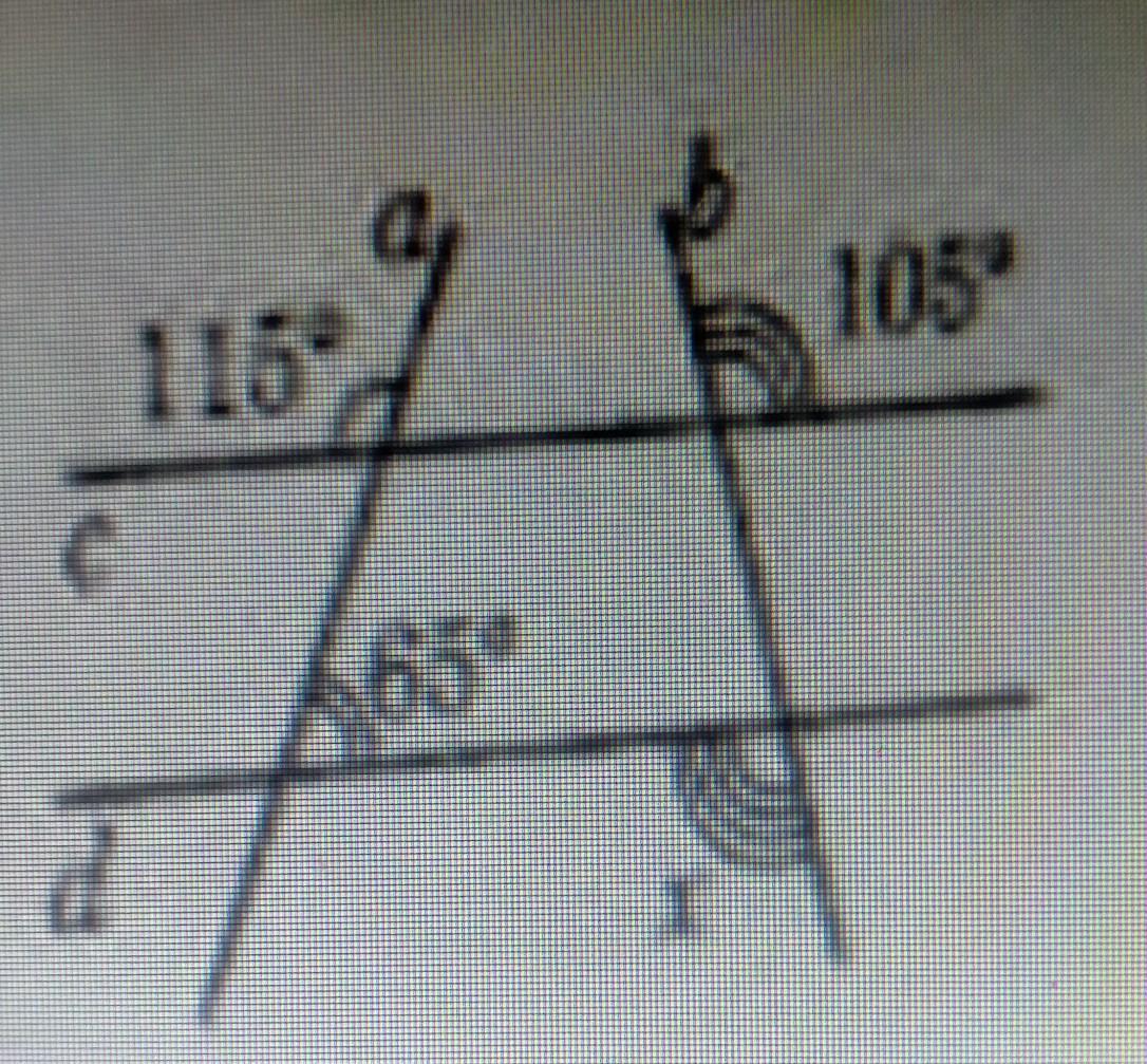 Х=105 градусов, так как внешние накрест лежащие углы равн