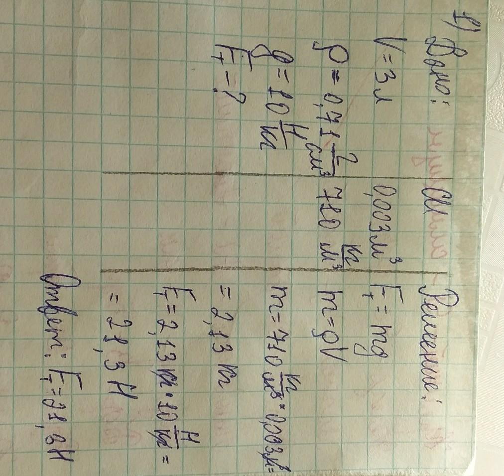 1.чему равна сила тяжести действующая на 3 л бензина?