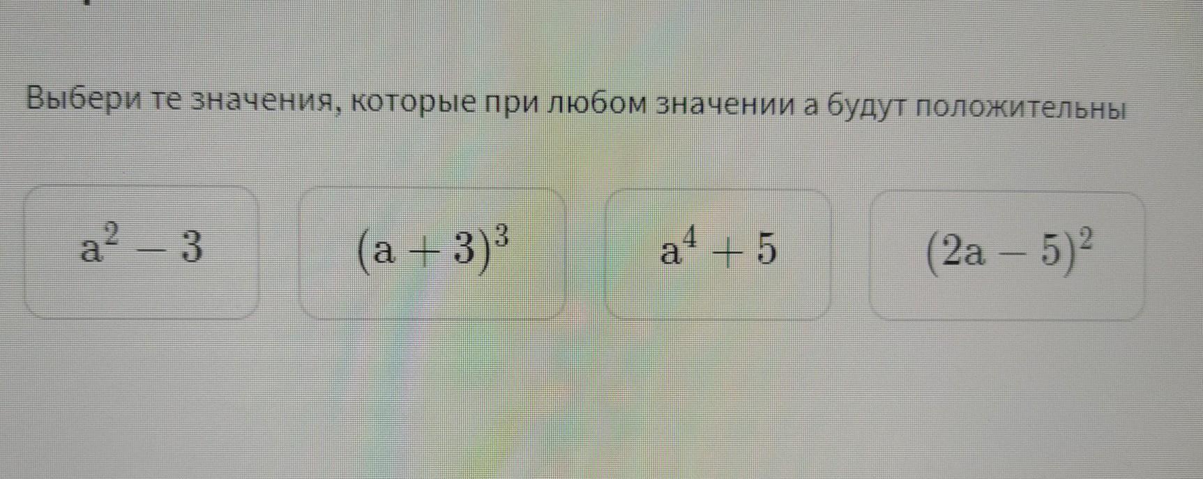 Только выражение a⁴ + 5 будет положительным при любом значении a ,