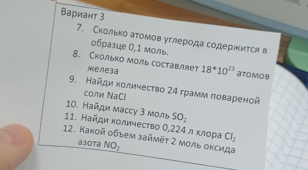 7) Один моль равен количеству вещества, содержащего постоянное количество атомов Авогадро, число около 6*10^23, так что это довольно большое число. Вес этого образца равен атомной массе атома (или соединения). Например, для углерода его атомная масса равна 12, так что в одном моле углерода будет 12 граммов