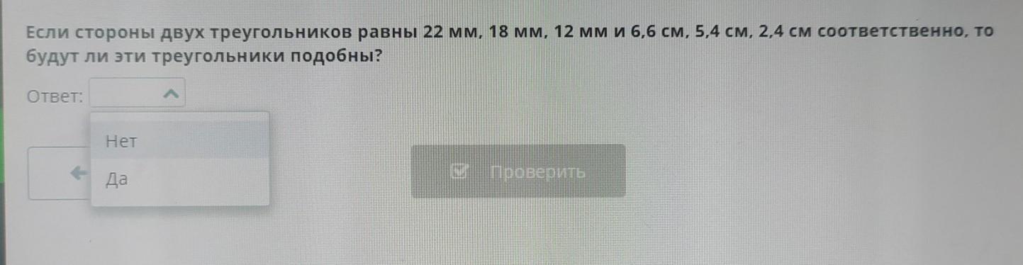 Как видно, отношение не совпадает у третьей стороны, а значит эти треугольники не подобны
