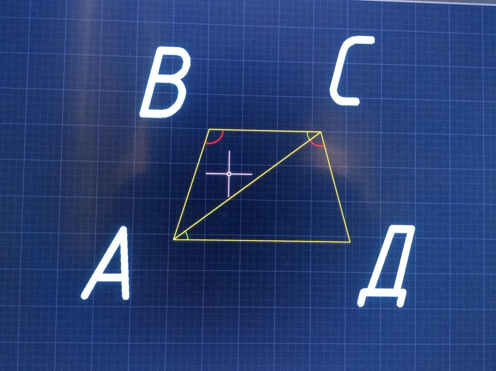 Угол АСВ равен углу САД как внутренние накрест лежащие при параллельных прямых (зеленые)