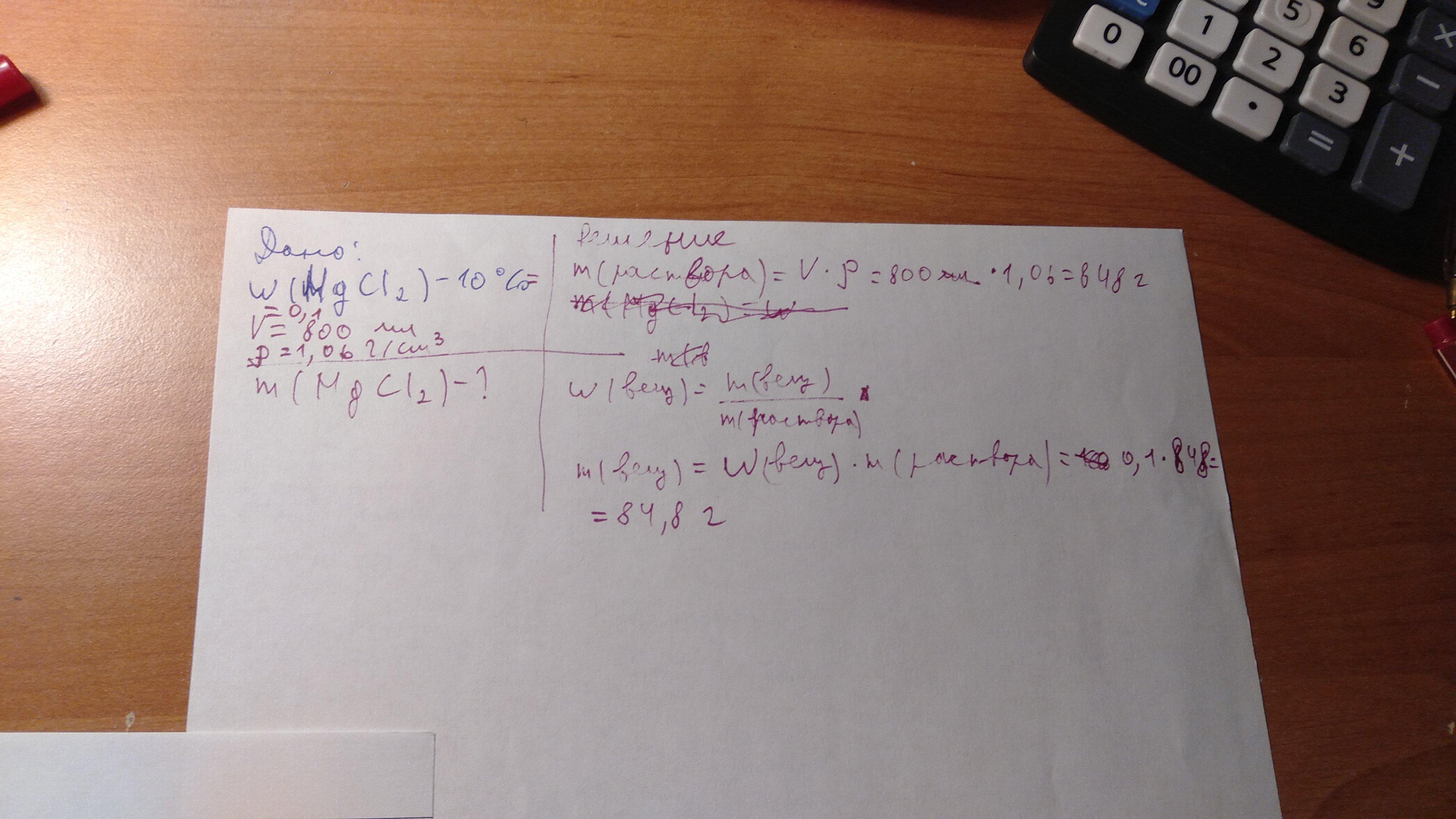 Сколько граммов MgCl2 содержится 800 мл раствора с массой долей MgCI2 10% плотностью 1,06 г/см^2