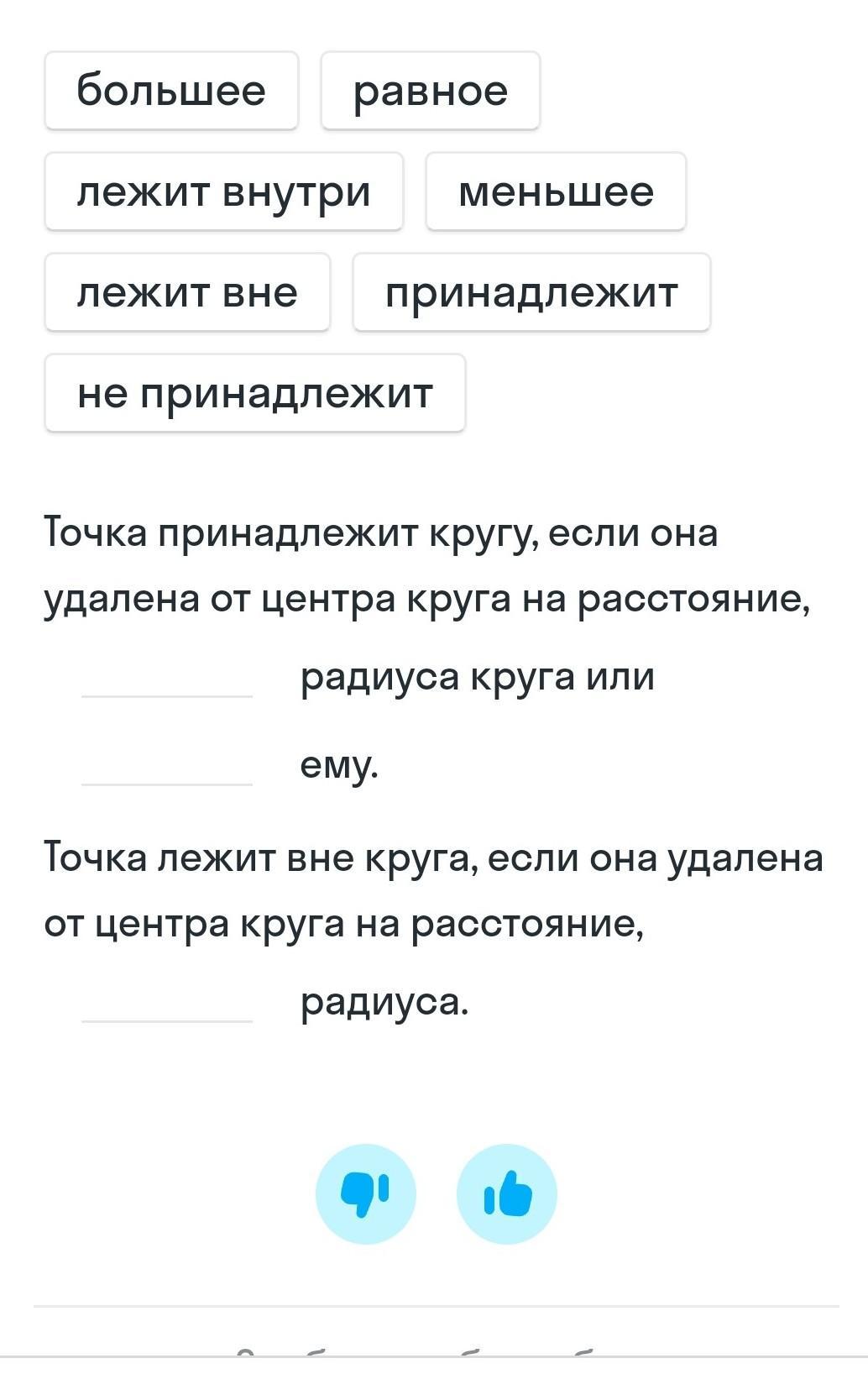 Если точка удалена от центра круга на расстояние, меньшее длины радиуса, или равное ему.