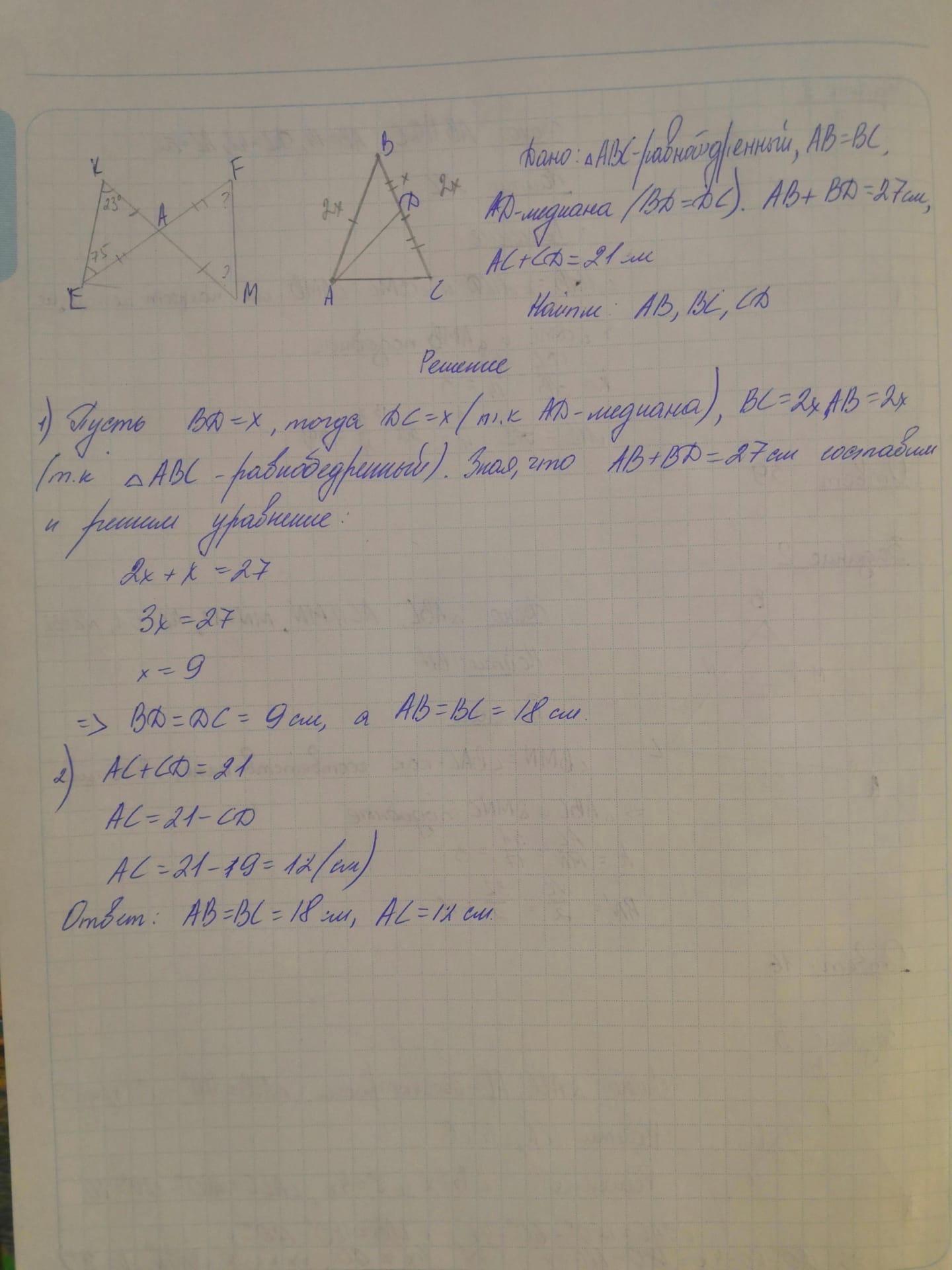 1)так как одна из сторон равностороннего треугольника равна 8 см, то и другие равны 8 см. а раз все 8 см, то и одна из сторон другого треугольника тоже 8 см. составим уравнение, сторона dc будет равна х.