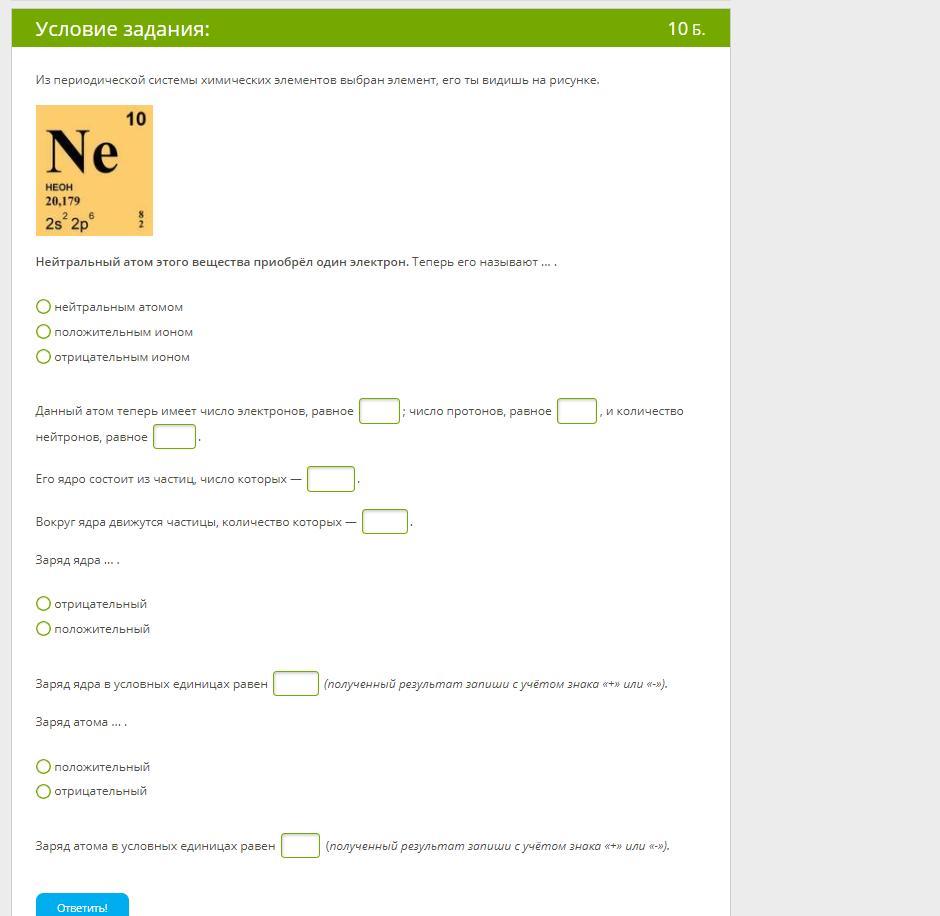 Нейтральный атом этого вещества приобрёл один электрон. Теперь его называют ... .