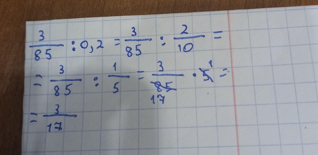 3/85:0,2=3/85:2/10=3/85:1/5=3/85×5=3/17