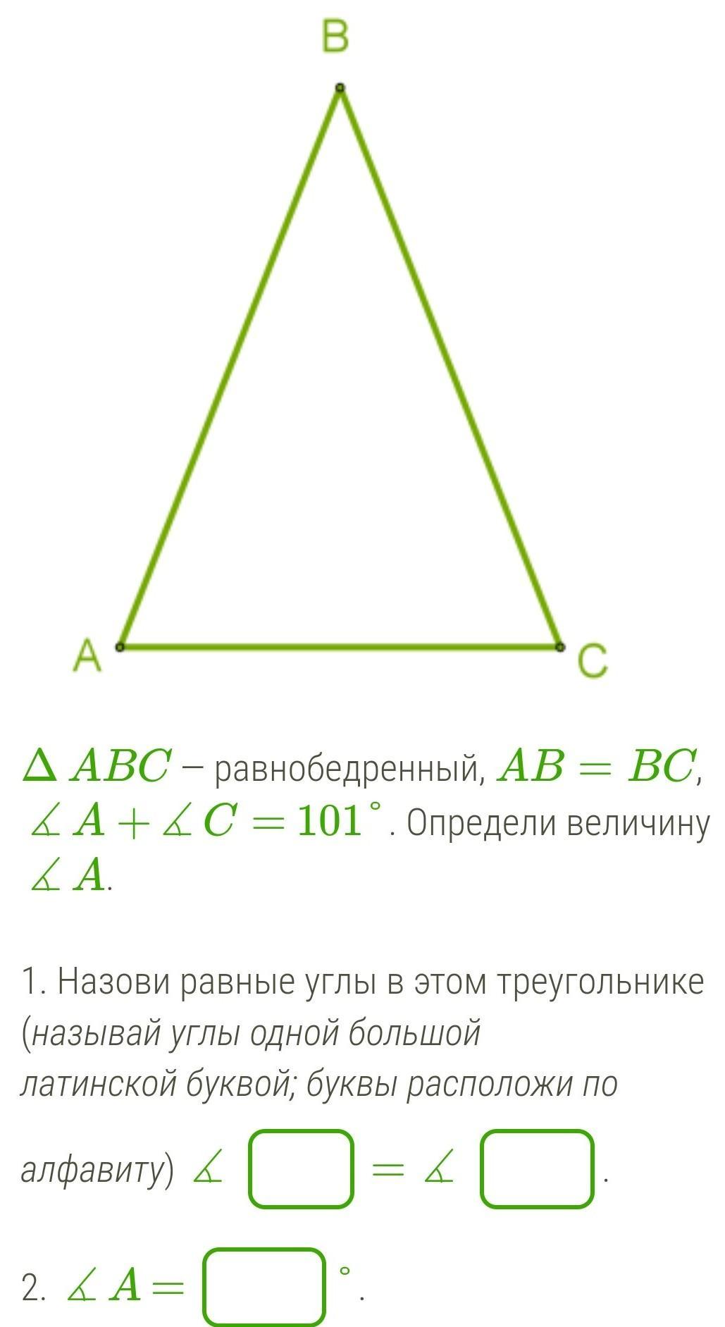 2)А=101/2=50,5°( А+С=101, А=С следовательно А это половина 101)