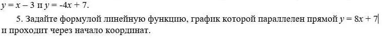 задайте формулой линейную функцию, график которой параллелен прямой y=8x+7 и проходит через начало координат