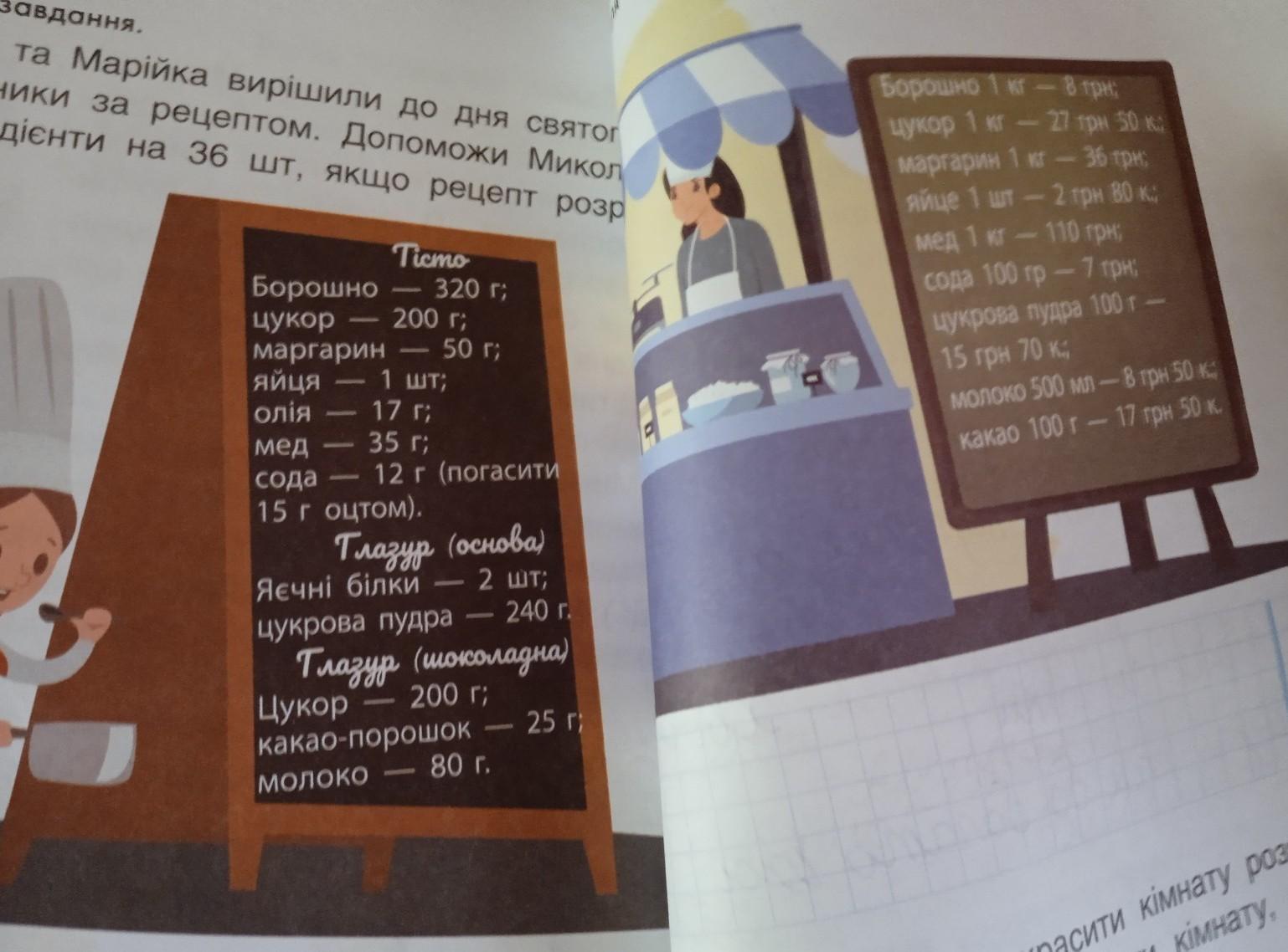 Миколка та Марійка вирішили до дня святого Миколая виготовити миколайчики за рецептом. Допоможи Миколці та Марійці розрахувати інгредієнти на 36 шт, якщо рецепт розрахований на 12 шт.