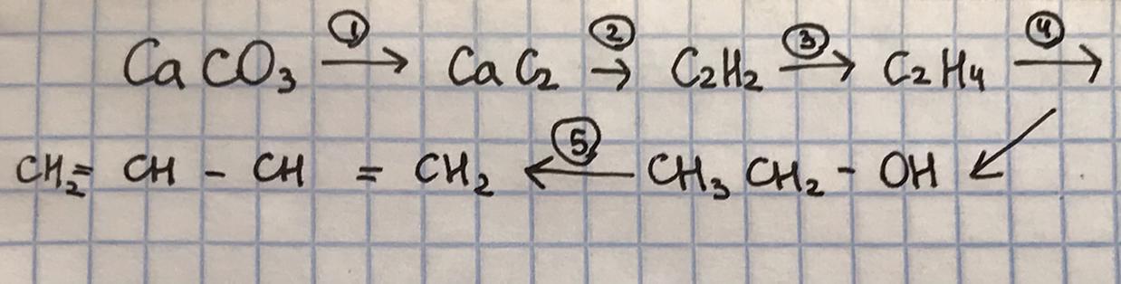 2C2H5OH[450 градусов,ZnO,Al2O3]C4H6+2H2O+H2