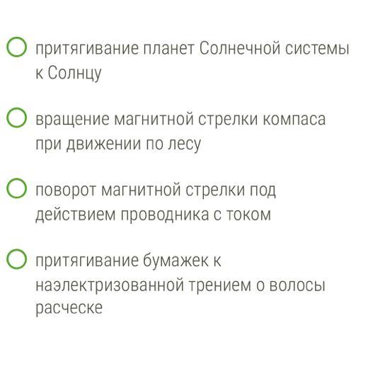Определи, какой из примеров иллюстрирует магнитное действие электрического тока. Выбери и отметь правильный ответ среди предложенных.